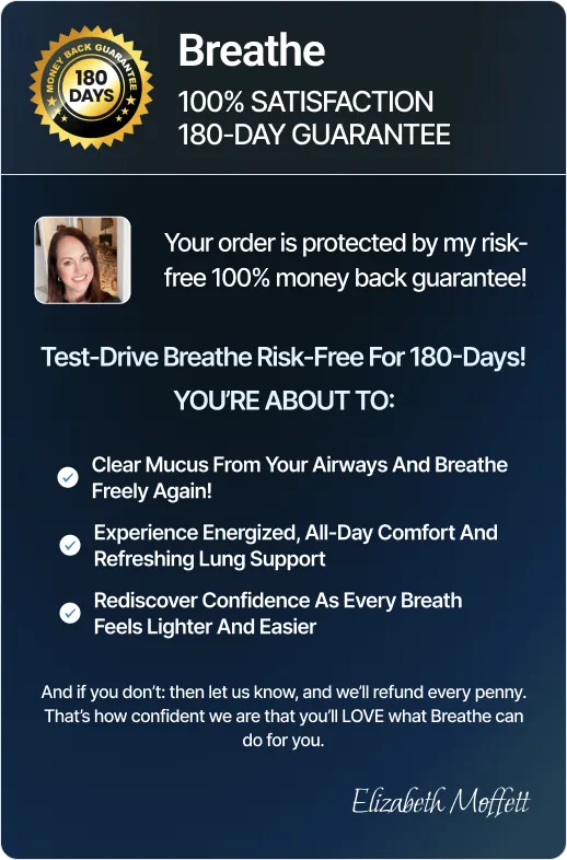 Backed by clinical research on its ingredients and hundreds of user experiences, BREATHE Drops delivers measurable benefits for those seeking a trustworthy lung detox remedy. It also comes with a 180-day money-back guarantee, offering peace of mind for new users ready to try a high-quality, risk-free solution for respiratory health.